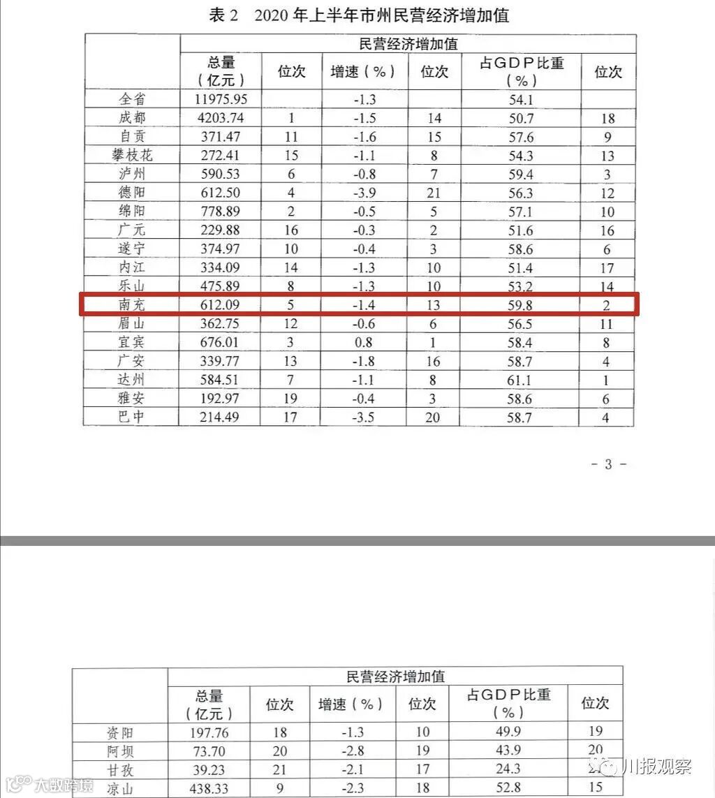 报告显示,2020年上半年,南充民营经济增加值占GDP比重59.8%,全省排名第二。