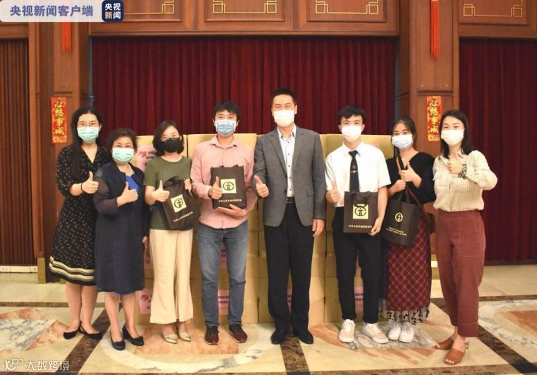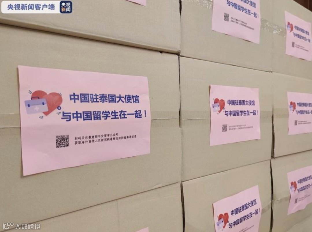 △中国驻泰使馆为留学生发放防疫“健康包”