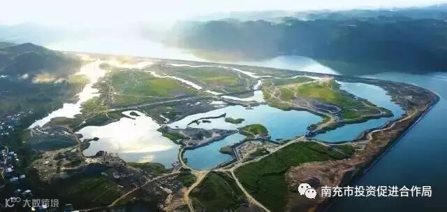 5月17日,记者在高坪区江陵镇的嘉陵江畔看到, 夕阳下的嘉陵江在此来了一个90度的“转身”,防洪堤内的中法农业科技园项目正在加速推进。江滩湿地上,一个个大小不一的湖泊,倒映着夕阳,形成一道独特的风景。