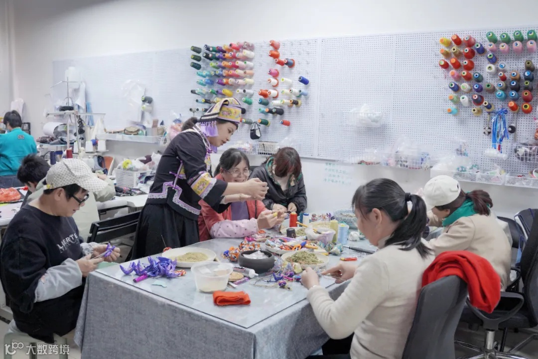 更值得一提的是,她探索出 “非遗+就业” 的发展模式,将技艺转化为妇女姐妹们“背着娃、绣着花、护着老、养着家”的灵活就业方式。让非遗不仅守得住根,更能走进日常、产生价值。