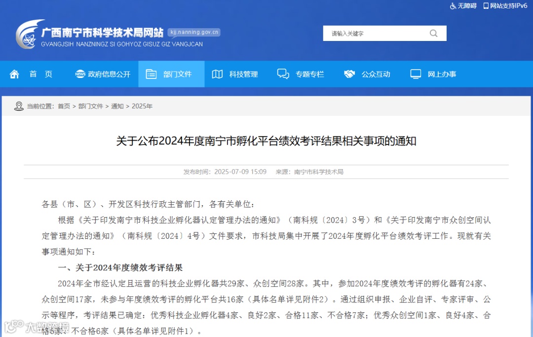 7月9日,南宁市科技局发布了《关于公布2024年度南宁市孵化平台绩效考评结果相关事项的通知》,青秀创新中心凭借卓越的运营服务能力与突出的孵化成效,成功入选优秀名单,获得“2024年度南宁市优秀科技企业孵化器”称号!这一荣誉不仅是对青秀创新中心过往努力与成绩的高度认可,更是其在科技创新与企业孵化领域持续奋进的强大动力。