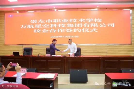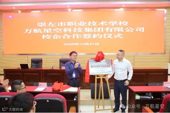 10月27日,青秀创新中心园区企业万航星空科技集团有限公司与崇左市职业技术学校校企合作签约仪式暨低空经济人才培养基地揭牌仪式隆重举行。