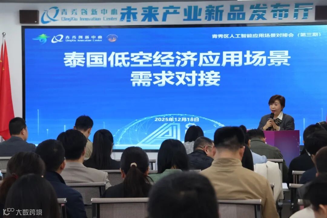 2025年12月18日下午,青秀区人工智能应用场景对接会(第三期)在青秀创新中心成功举办。本次活动聚焦“人工智能+跨境合作”,面向东盟市场开展多层次、多领域场景对接,吸引来自中国、越南、泰国、马来西亚等国的企业、机构代表线上线下共同参与,推动了一批务实合作项目的签约与对接。