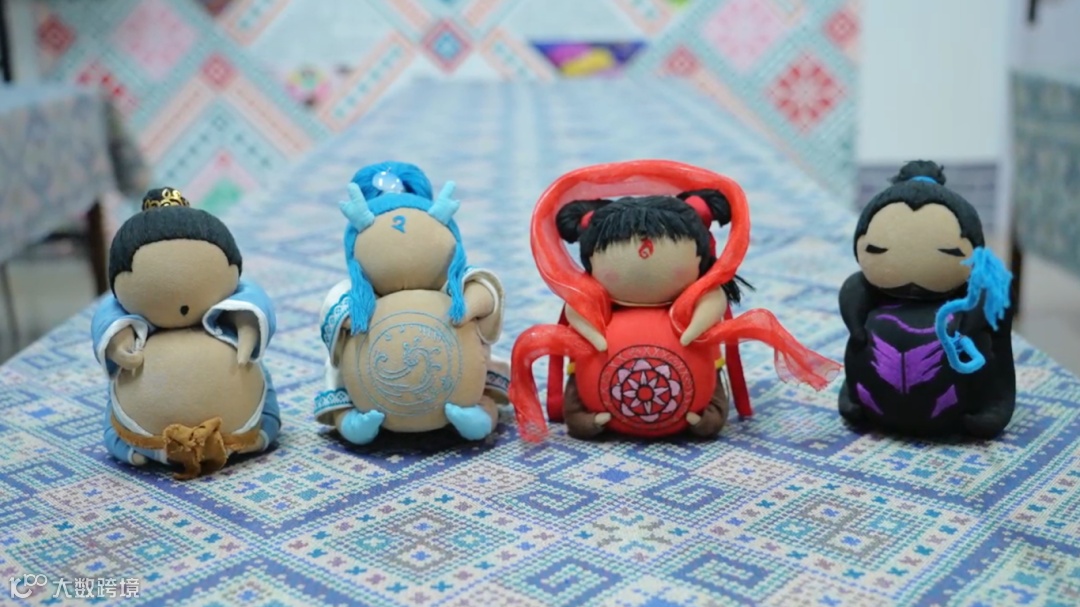 答:我尝试过把它和动漫人物进行结合,比如说哪吒系列的人偶,市场反馈还不错,也尝试让它和东盟十国的人物形象进行结合,表达两国之间的这种文化交融。