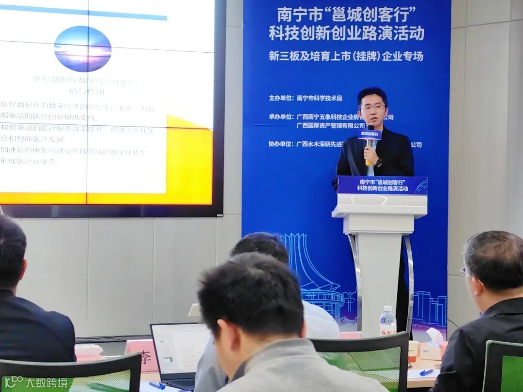 广西英伦信息技术股份有限公司、辽宁佳合晟世医药科技股份有限公司、江苏睿鸿网络技术股份有限公司、广西泛航国际物流有限公司等4家新三板及培育上市(挂牌)企业依次登台路演,所带来的项目涉及医疗可信数据空间建设、国家短缺药品供应、AI智能体、智慧物流等多个领域,兼具社会价值与技术创新突破。
