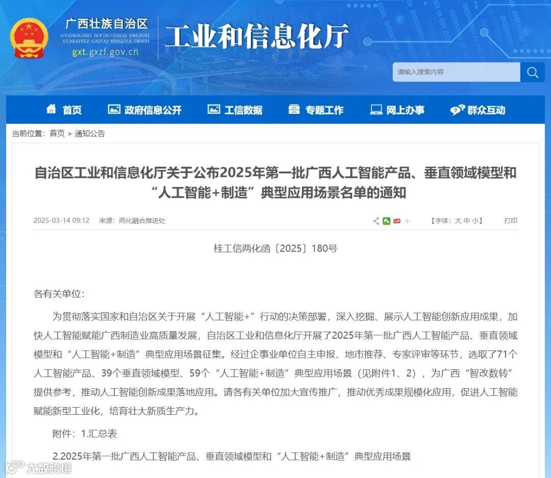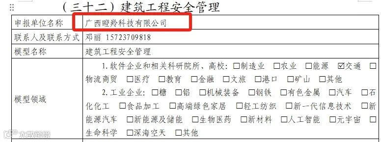据了解,本次入选名单经过企事业单位自主申报、地市推荐、专家评审等环节,选取了71个人工智能产品、39个垂直领域模型、59个“人工智能+制造”典型应用场景。广西瞪羚科技有限公司申报的“建筑工程安全管理”模型可广泛用于水库大坝、深基坑、高边坡、隧洞、地下工程、轨道交通工程等各类建筑施工场景,为广西“智改数转”提供参考。