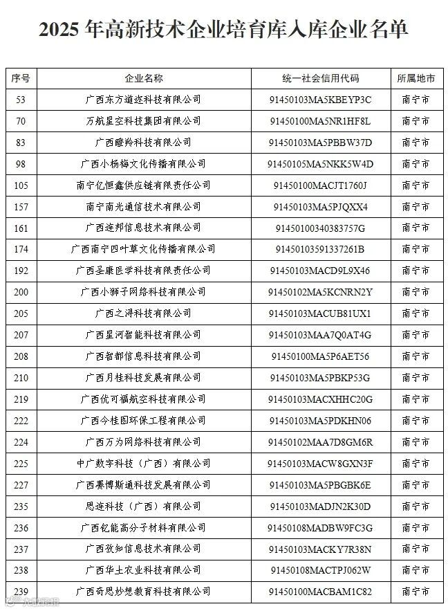 3月28日,自治区科技厅公布了2025年高新技术企业培育库入库企业名单,青秀创新中心共有24家企业入选。发展至今,青秀创新中心累计引进及培育国家高新技术企业15家,展示了园区及企业在科技创新领域的实力。