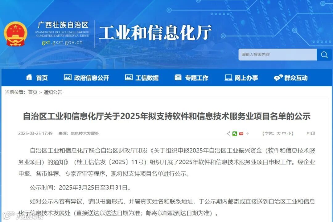 3月25日,自治区工业和信息化厅公示2025拟支持软件和信息技术服务业项目名单,青秀创新中心园区企业四叶草、星河智能入选。