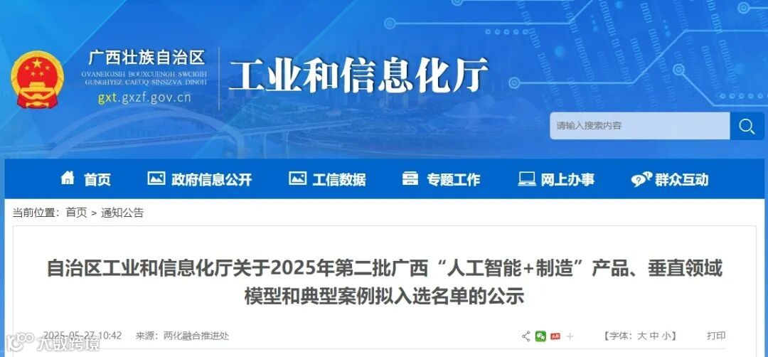 自治区工业和信息化厅公布2025年第二批广西“人工智能+制造”产品、垂直领域模型和典型案例拟入选名单。青秀创新中心园区企业广西铁翔科技有限公司申报的“高速铁路智能安防设备体系”人工智能产品成功入选,为园区科技创新发展注入强劲动力。