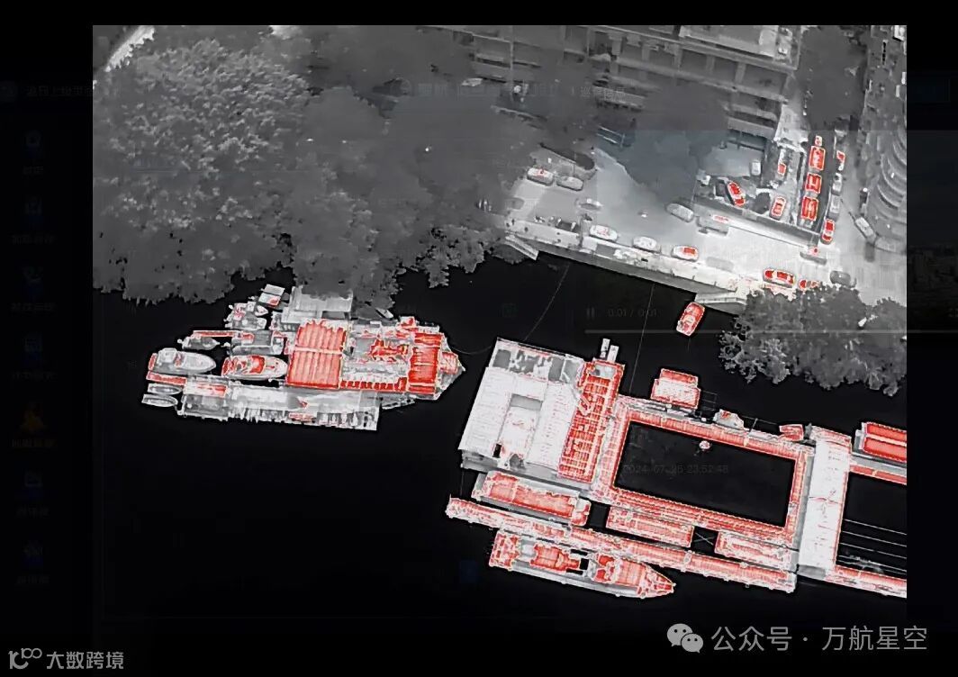 在红外镜头下,星航系统可在夜间轻松识别水域隐患,清晰探查河道与周边环境情况,实现全天侯自动化、立体化的全方位水域检测。