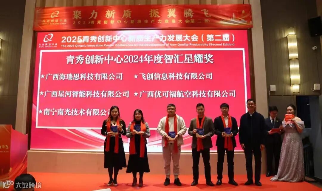 新技术、新产品的首发,是科技创新作为第一生产力的深刻体现,是新质生产力不断重塑经济结构、引领社会发展的强大力量。在快速迭代的科技浪潮中,青秀创新中心园区企业以创新为驱动,以用户为中心,不断突破自我,形成累累科技硕果。本次年会的“青秀科创新品首发”仪式堪称一大亮点,众多青秀创新中心科技企业在此首次推出极具创新性的科技产品。分别是广西亿翔无人机科技有限公司《无人机5G网联模块》、飞创信息科技有限公司《海量数据全生命周期管理及数据保护》、广西南林大数据科技有限公司《飞行机器人》、 南宁智宁芯半导体有限公司《高速运算服务器芯片及边缘端高效S0C芯片》、 广西智都信息科技有限公司《科技新质,低空未来产品首发》、中广数字科技(广西)有限公司《AlAgent 生态矩阵首发》、广西瑞星光投资有限公司《南师傅服务平台》。