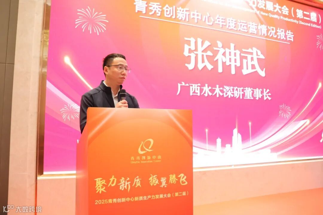 广西水木深研董事长张神武带来了青秀创新中心年度运营情况报告。通过详实的数据和清晰的阐述了过去一年青秀创新中心在项目推进、成果转化等方面的显著成效。强调在未来,青秀创新中心也将积极应对环境变化,按新发展思路调整服务着力点,升级企业服务体系,助力更多企业实现创新发展。