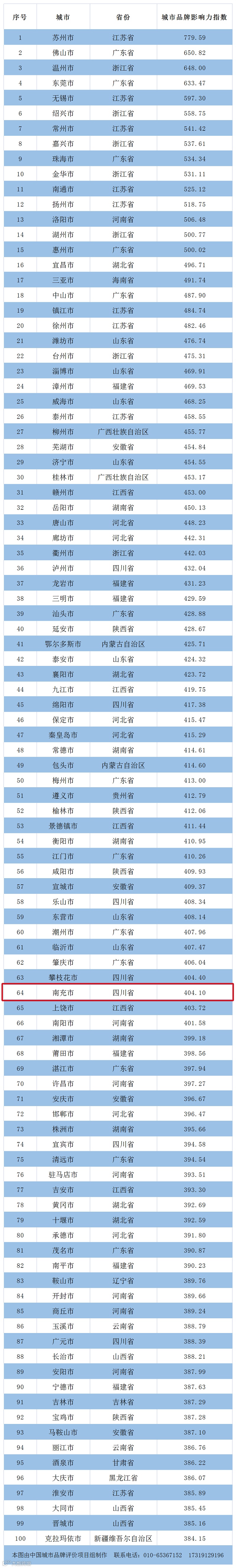 城市品牌是一个城市生态形象、文化形象、经济形象、政府形象的客观展示,城市品牌的评价有利于城市竞争力的提升和人民生活质量的提高。此次城市品牌排名的公布是对南充努力打造城市品牌工作的认可。