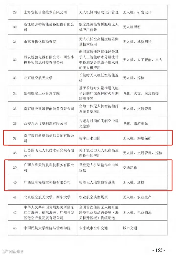 ① 10月22日,2024(第七届)中国航空科学技术大会在成都举行,会上发布了中国航空学会编著的《2024低空经济场景白皮书》。其中,《白皮书》中提到的70个低空经济应用场景案例中,有9个来自广西的工作单位入选,占比全国12%,更值得一提的是,这9家工作单位皆是青秀创新中心园区企业、和南宁市低空经济产业协会会员单位,占比广西100%。