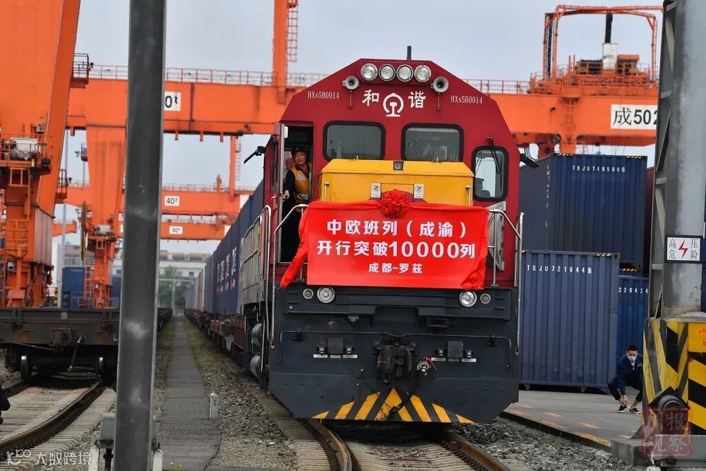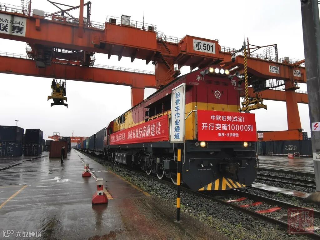 随着汽笛喧鸣,中欧班列(成渝)缓缓启动