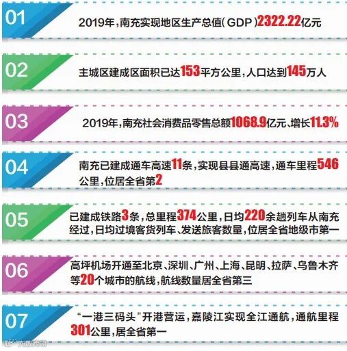 6月5日,南充国际会展中心开工建设,当天高坪区共集中开工19个重大项目,总投资115.55亿元;6月16日,南潼高速(四川段)和南充过境高速公路开工,当天顺庆区集中开工36个重点项目,总投资312.64亿元。