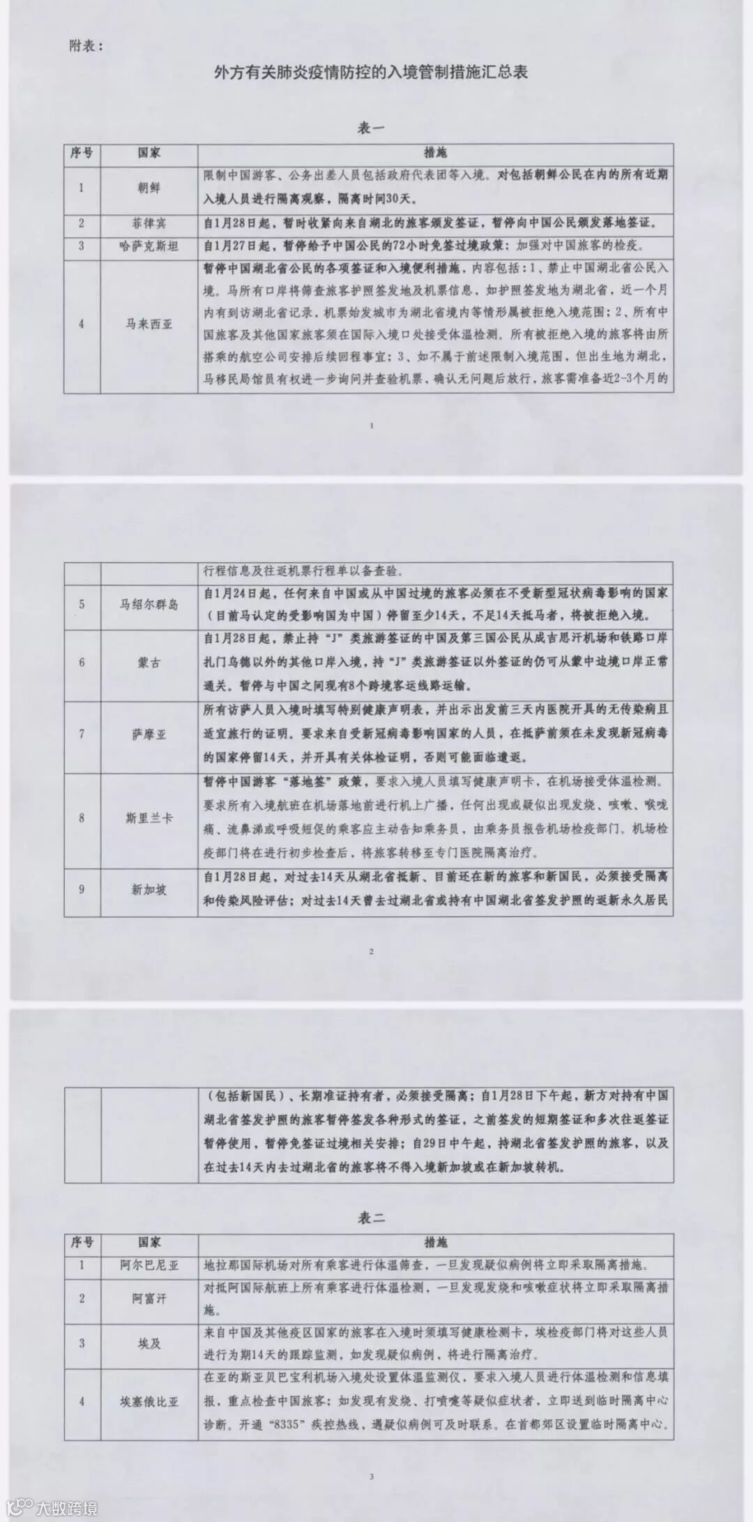 导读:为防控新型冠状病毒感染的肺炎疫情,部分国家已在口岸采取了相应的入境管制措施(详见附表