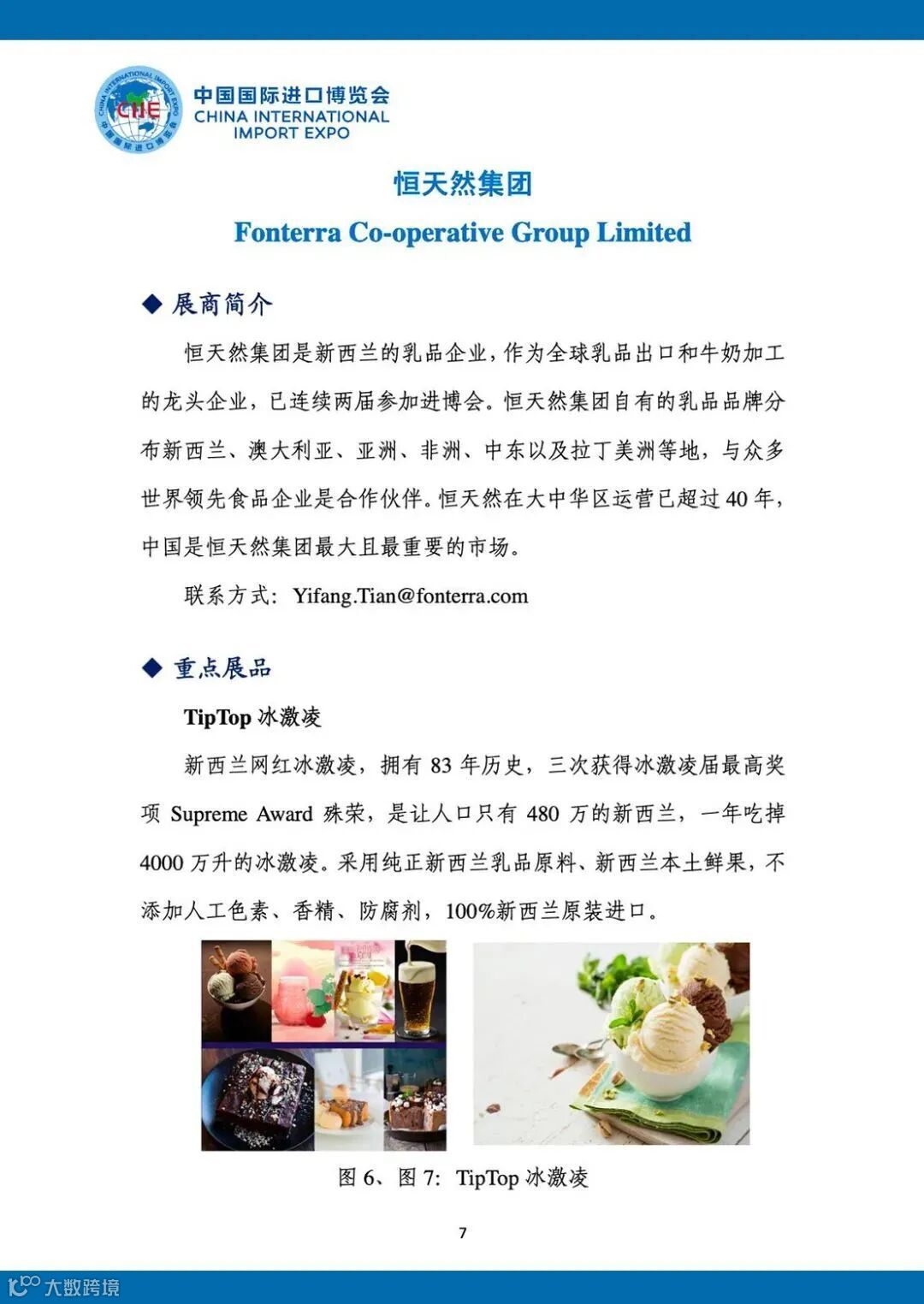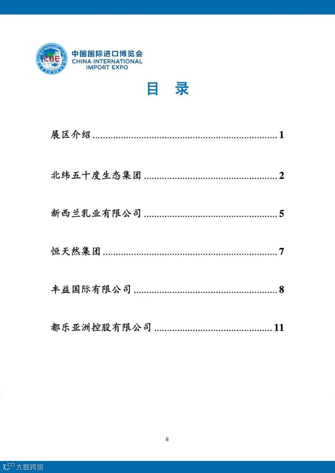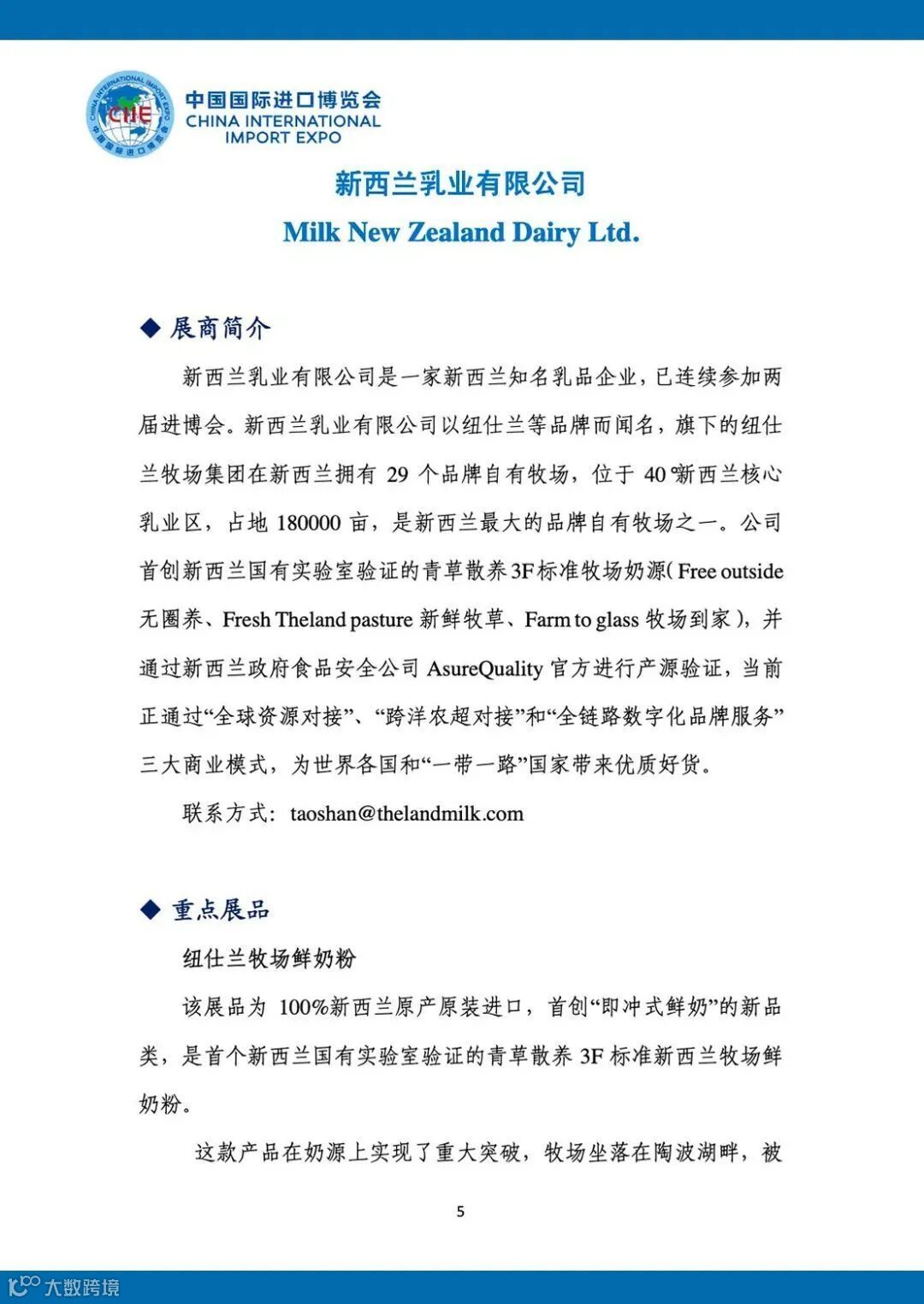 展商展品信息第1期介绍了北纬五十度生态集团、新西兰乳业有限公司、恒天然集团、丰益国际有限公司、都乐亚洲控股有限公司等5家食品及农产品展区展商及其计划参展展品信息。