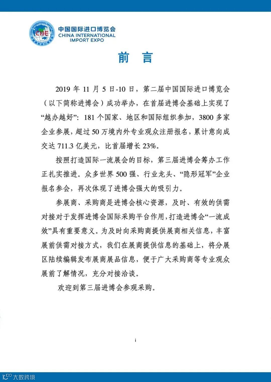 为及时将第三届进博会展商展品信息提供给专业观众,便利展前对接洽谈,中国国际进口博览会在参展商自愿提供信息的基础上,分展区将展商展品信息编辑成册发布。