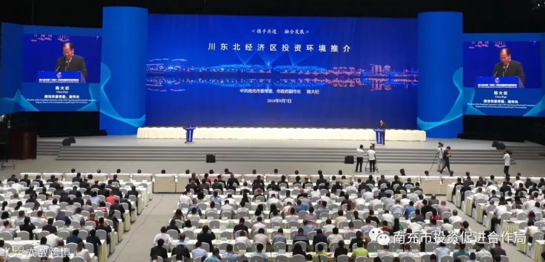 会上,全省以五大经济区为单位进行投资推介。南充作为川东北经济区轮值市,由陈大纪就川东北经济区投资环境进行推荐,介绍了南充、巴中、达州、广安、广元五市的区位优势、发展规划与机遇,以及资源、经济、产业等情况,并向国内外企业客商发出到川东北经济区兴业安居的诚挚邀请,共谋发展,促进川东北经济区大开放、大合作、大发展。