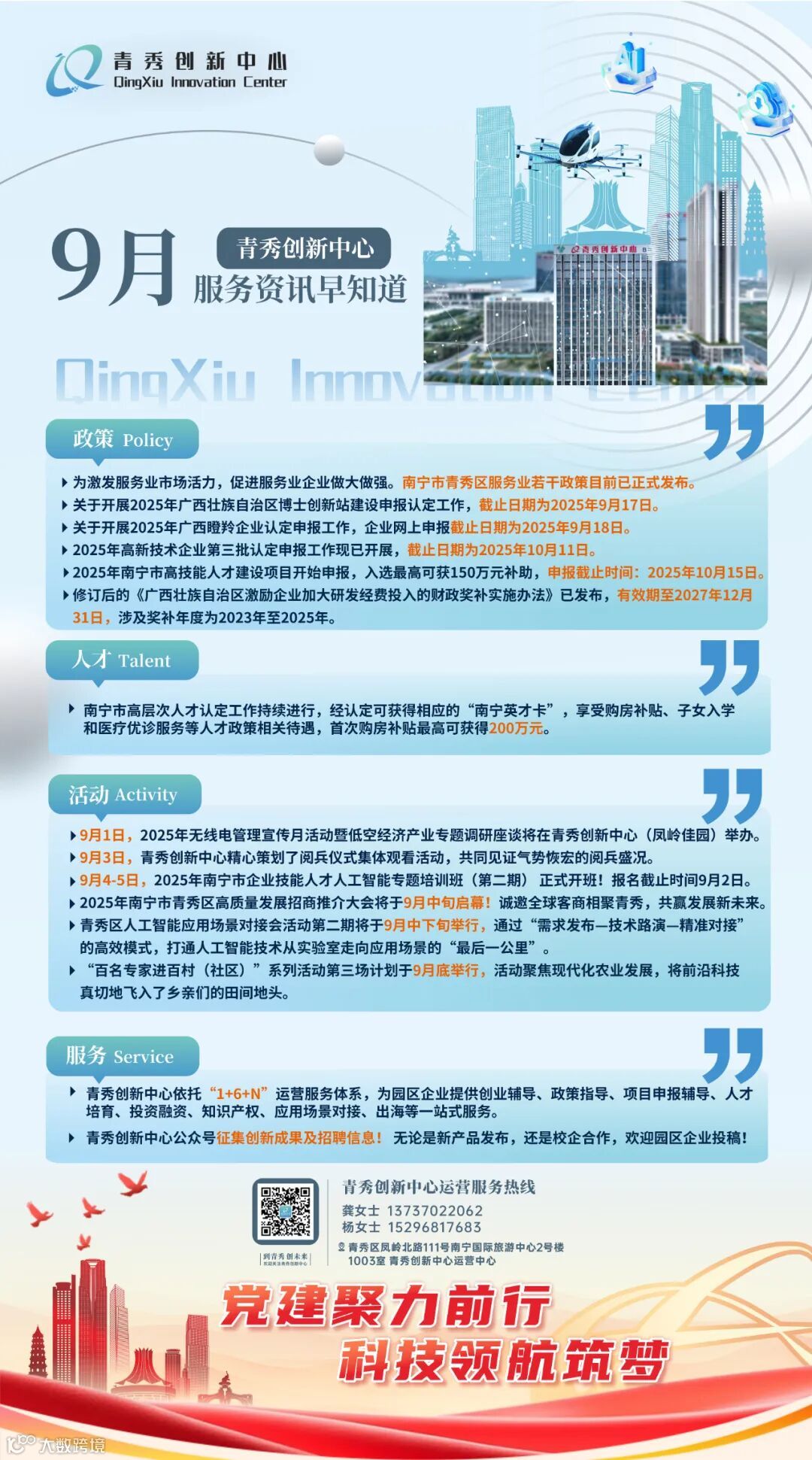服务快讯 | 叮!青秀创新中心9月资讯早知道来啦!