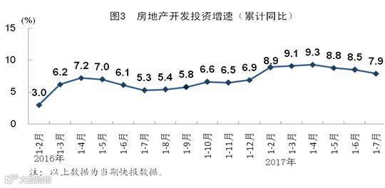 1-7月份,全国房地产开发投资59761亿元,同比增长7.9%,增速比1-6月份回落0.6个百分点,其中住宅投资增长10.0%。房屋新开工面积100371万平方米,同比增长8.0%,其中住宅新开工面积增长11.9%。全国商品房销售面积86351万平方米,同比增长14.0%,其中住宅销售面积增长11.5%。全国商品房销售额68461亿元,同比增长18.9%,其中住宅销售额增长15.9%。房地产开发企业土地购置面积12410万平方米,同比增长11.1%。7月末,全国商品房待售面积63496万平方米,比6月末减少1081万平方米。1-7月份,房地产开发企业到位资金87664亿元,同比增长9.7%。
