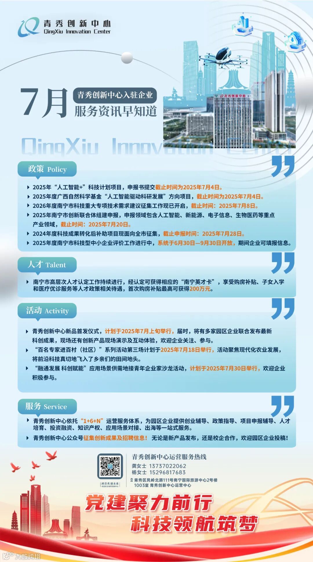 服务快讯 | 叮!青秀创新中心7月资讯早知道来啦!