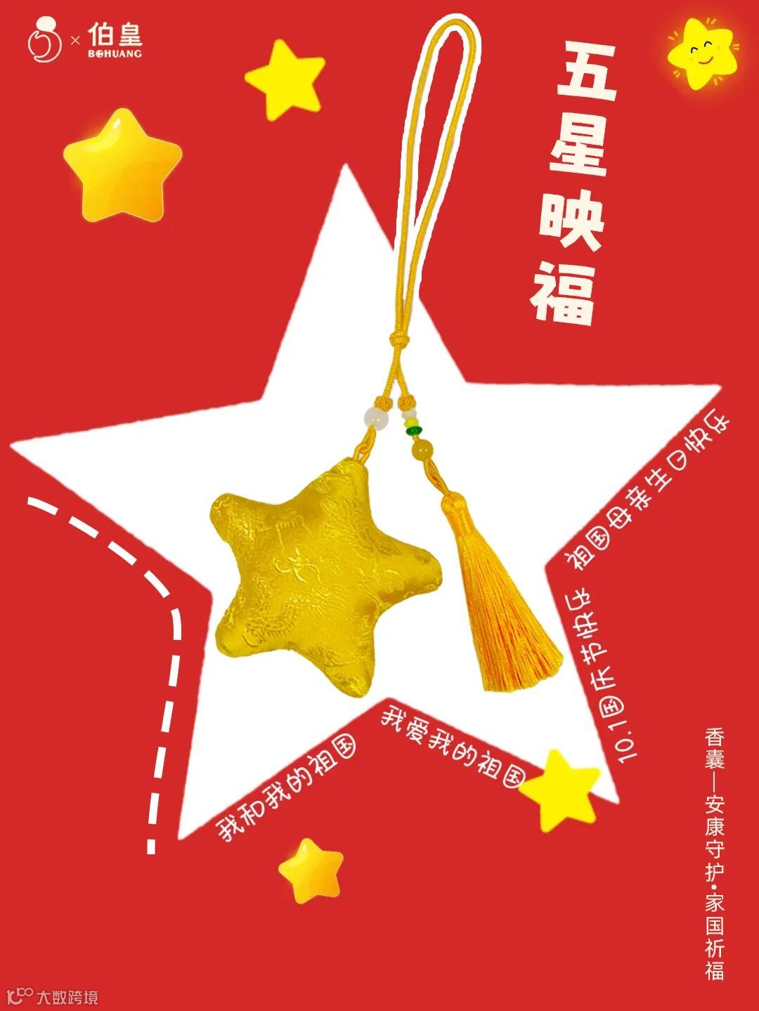“五星映福”,金色五星香囊,闪耀着家国的荣光,贺家国昌盛。