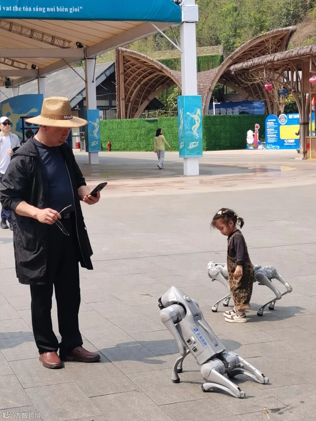 4月3日,在广西德天跨国瀑布的青山碧水间,智都科技携5台智能机器狗与1台人形机器人惊艳登场,上演了一场未来感十足的"科技与自然对话"。这场以"AI赋能文旅新体验"为主题的展示活动,不仅让游客亲身感受人工智能的奇妙魅力,更揭开了智慧旅游时代的一角。