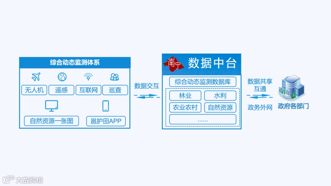 “一个库”融合共享,提高治理效能。以自然资源“一张图”核心数据库为基础,融合农业农村、林业、水利等各类数据,形成多渠道综合监测数据优势互补,为各级各部门开展三长制工作提供精细化数据支撑和决策依据。