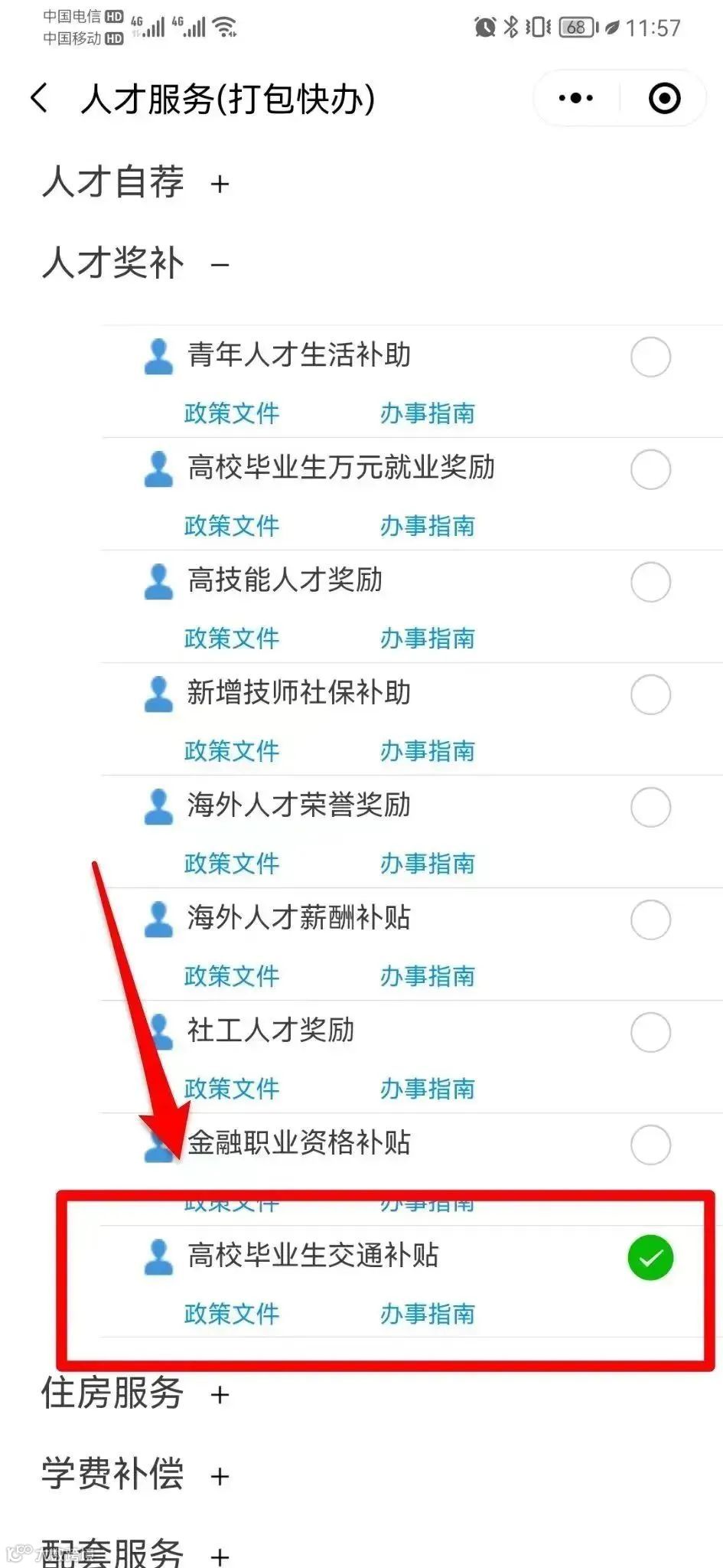 第二步:点击人才奖补>>>高校毕业生交通补贴,点击下一步,按提示填写信息,上传相关资料提交即可完成申报。