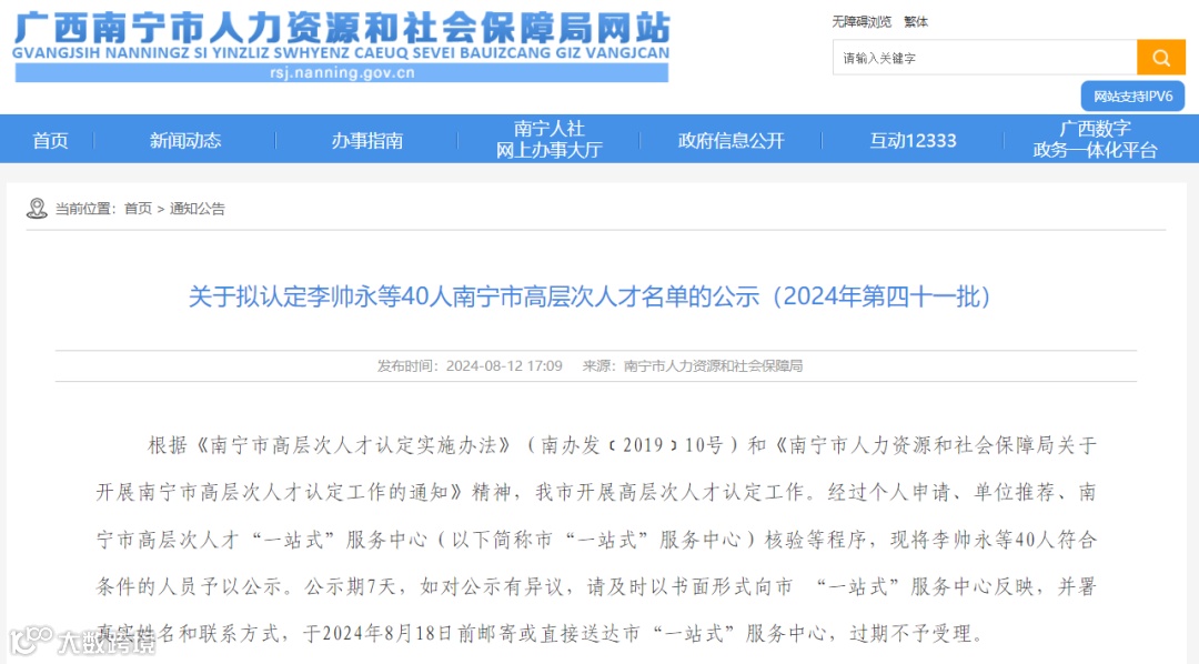 新增“南宁市高层次人才B类”1名