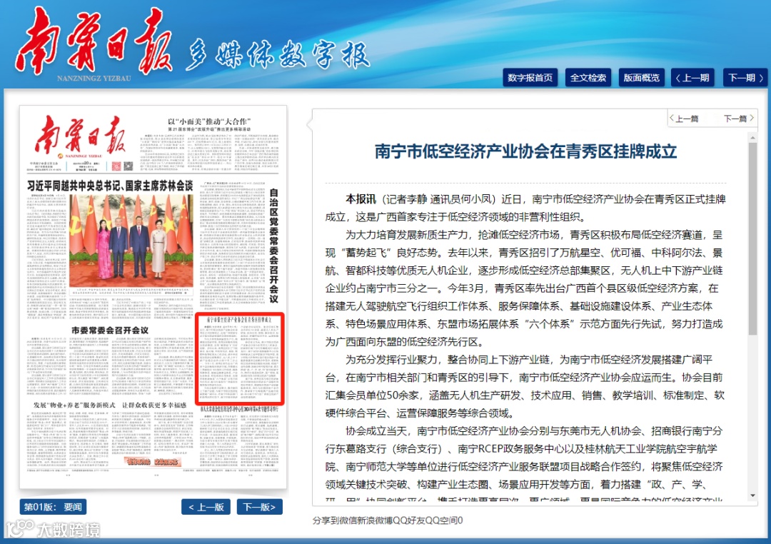 接下来,青秀区将与低空经济协会共同聚焦低空经济全产业链布局和应用牵引,构建低空经济产业创新服务体系,深化与东盟国家产业合作,推动南宁与粤港澳产业融合发展,助力南宁市乃至广西低空经济产业高质量发展。