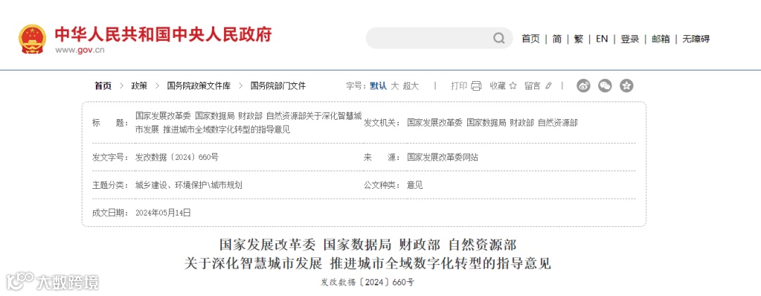 近日,国家发展改革委、国家数据局、财政部、自然资源部四部门联合发布《关于深化智慧城市发展 推进城市全域数字化转型的指导意见》(以下简称《意见》)。《意见》提出,培育壮大数据产业,发展一批数据商和第三方专业服务机构,提高数据要素应用支撑与服务能力。