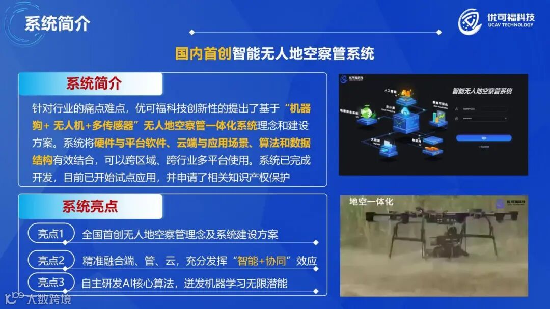 广西优可福航空科技有限公司推出了智能无人地空察管一体化系统。该系统深度融合了无人机侦察、地面监控及信息化管理技术,构建起一个全方位、多层次的监控管理体系。该系统不仅能够实时传输高清视频数据,还能进行智能分析预警,极大地提升了应急响应速度和决策效率。
