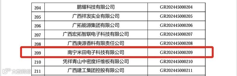 此次园区企业南宁米田电子科技有限公司凭借其卓越的创新能力,独特的技术优势和高成长性,成为2024年首批入选的高新技术企业,展示了园区企业在科技创新领域的实力。