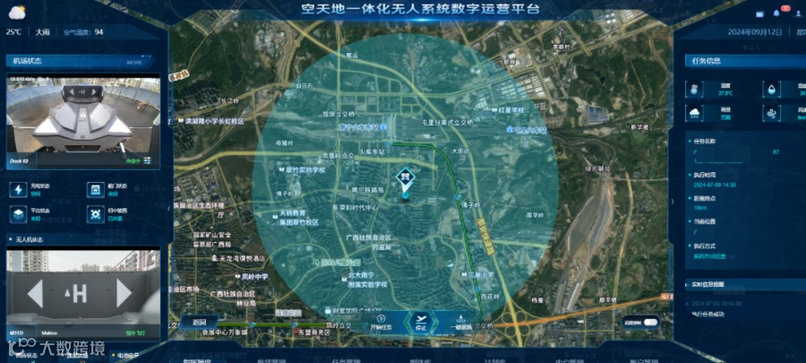 本次防汛任务,智都科技独立研发的智都星云系统在巡查调度工作中大展身手。在青秀管控辖区内,已提前部署了移动式无人机值守平台1台,垂起固定翼无人机巢1台,以及多台多旋翼固定式机巢及物流运载无人机,通过智都星云系统之空天地一体化无人系统数字化运营平台,可接入多类物联网监测系统,联动相关部门、各级综治中心、网格人员,为相关部门防汛工作提供重要参考依据,也可直接联动基层综治中心网格员处置灾情。