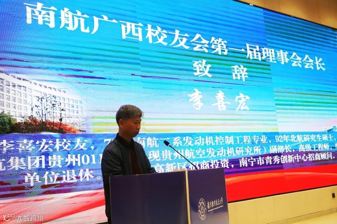 首任会长由青秀创新中心运营公司顾问李喜宏担任,他代表广西校友会第一届理事会致辞。他表示,广西校友会将坚持以校友为中心的工作理念,强化组织建设、谋划校友活动、深化行业互动,搭建好在桂校友沟通交流共赢平台,以实际行动为校友服务,为母校添彩。