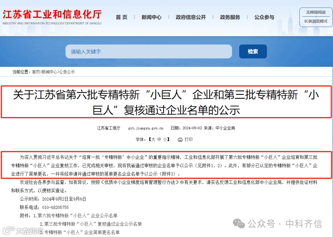 9月2日,国家工业和信息化部发布了第六批专精特新“小巨人”企业和第三批专精特新“小巨人”复核通过企业名单,南京中科齐信科技有限公司荣获国家级专精特新“小巨人”企业认定!