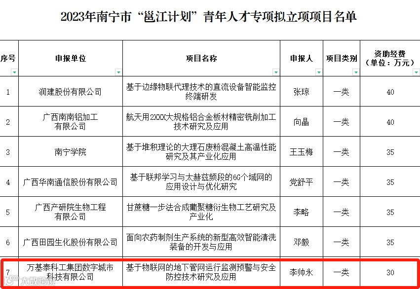 企业发展 | 万基泰获2023年南宁市“邕江计划”青年人才专项立项