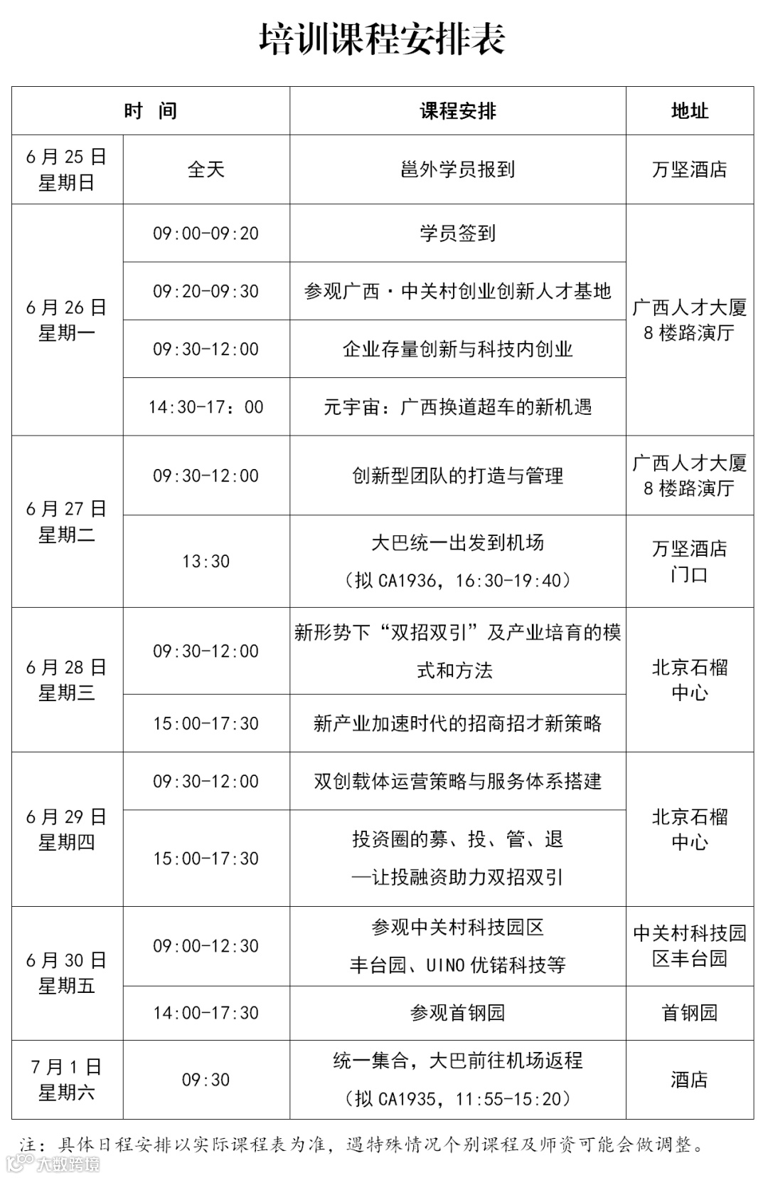 报到时间:邕外学员于6月25日全天报到;驻邕学员于6月26日上午09:00,会场签到。