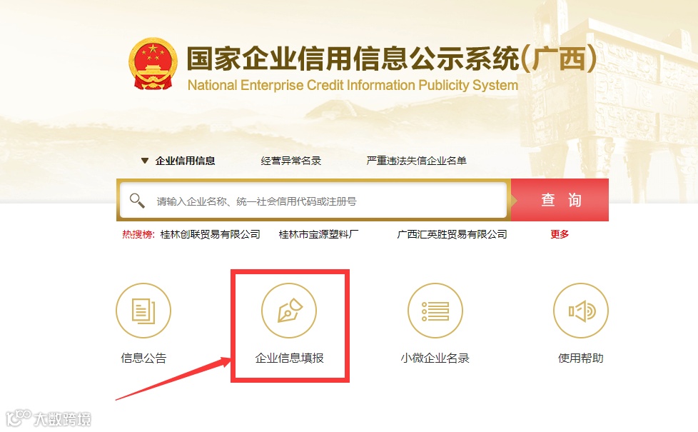 打开国家企业信用信息公示系统(广西)