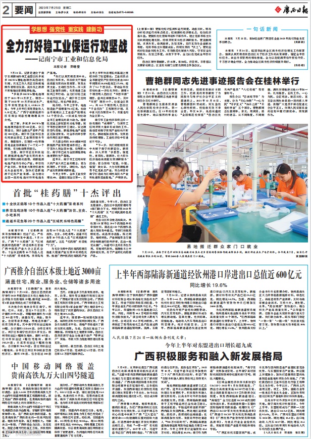 “我们认真贯彻落实中央、自治区和市委、市政府关于推动高质量发展的决策部署,聚焦主责主业,主动担当作为,深入实施工业强市战略,扎实推进工业振兴三年行动,全力打好稳工业保运行攻坚战。”南宁市工信局党组书记、局长卢晴表示。