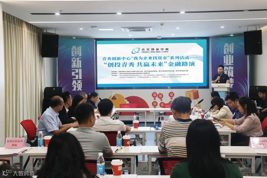 参加活动的还有青秀区金融办副主任梁星、青秀区经信局局长华朗、青秀区科技局局长杨伊莉、青秀区科技局副局长李芳、青秀创新中心运营公司总经理李振兴、投资机构和路演机构相关负责人等。
