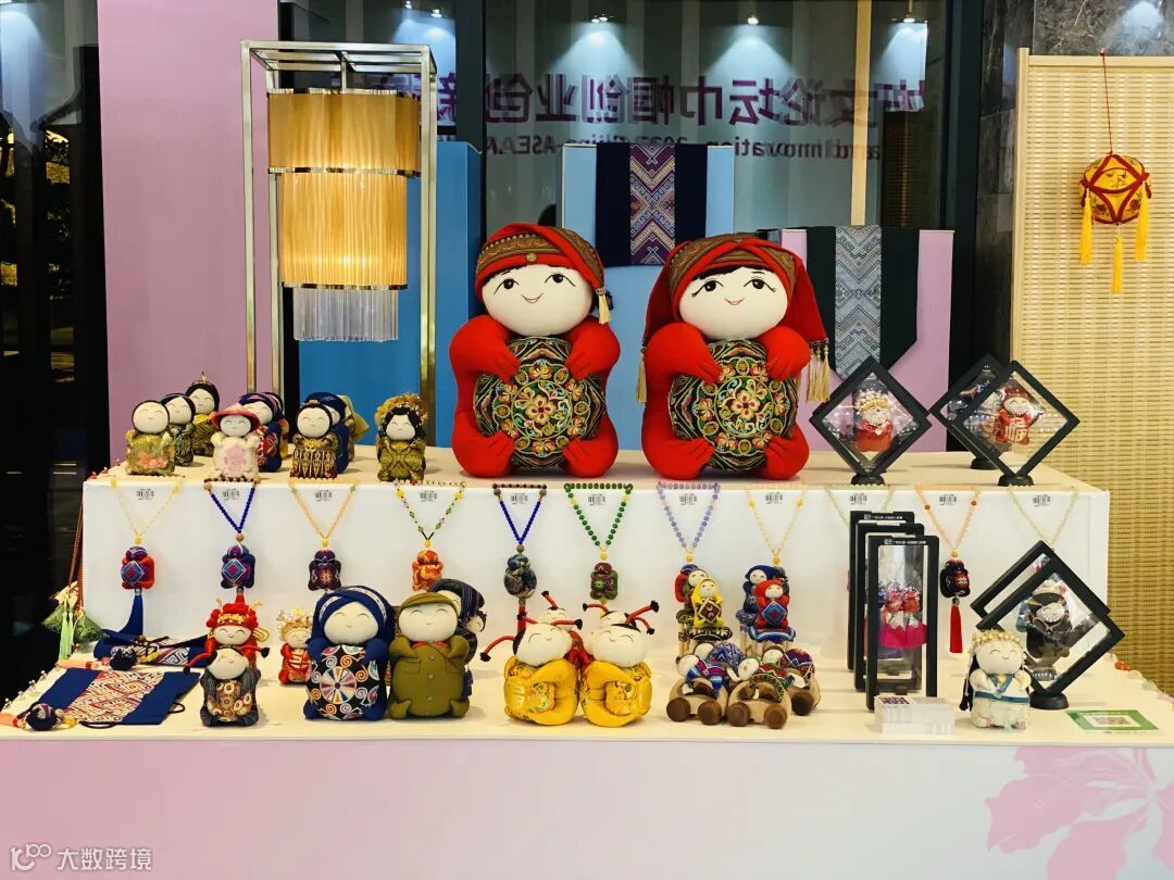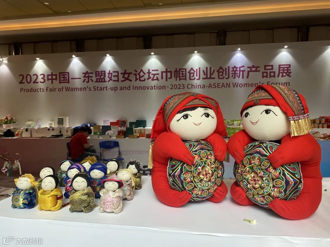 本届论坛还设置了巾帼创业创新产品展。在广西伯皇文化传播有限公司的展位上,展示了麽乜(me miē)等各类文创产品,吸引了众多嘉宾前来观看。
