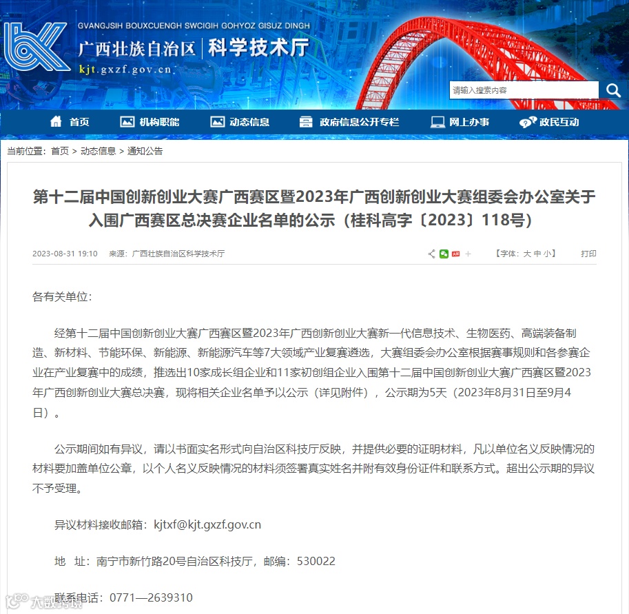 近日,经第十二届中国创新创业大赛广西赛区暨2023年广西创新创业大赛新一代信息技术、生物医药、高端装备制造、新材料、节能环保、新能源、新能源汽车等7大领域产业复赛遴选,园区企业南宁临界鹰信息技术有限公司入围十二届中国创新创业大赛广西赛区暨2023年广西创新创业大赛总决赛。