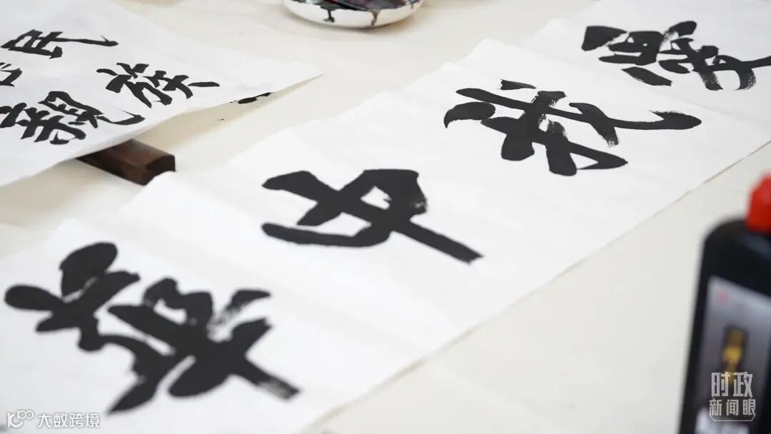 △蟠龙社区居民创作的书法作品。(总台央视记者赵婷拍摄)