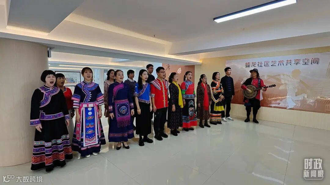 △蟠龙社区居民演唱民族歌曲《幸福嘹嘹啰》。(总台央视记者杨立峰拍摄)