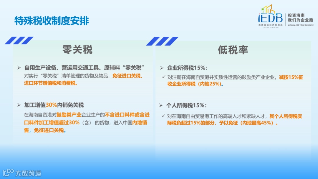 海南自贸港采取特殊税制安排,对标高水平经贸规则制定政策和制度。而以“零关税”和“低税率”为主要特征的自贸港特殊税制安排,是由《中华人民共和国海南自由贸易港法》所保障的,确保政策的稳定性和可持续发展。