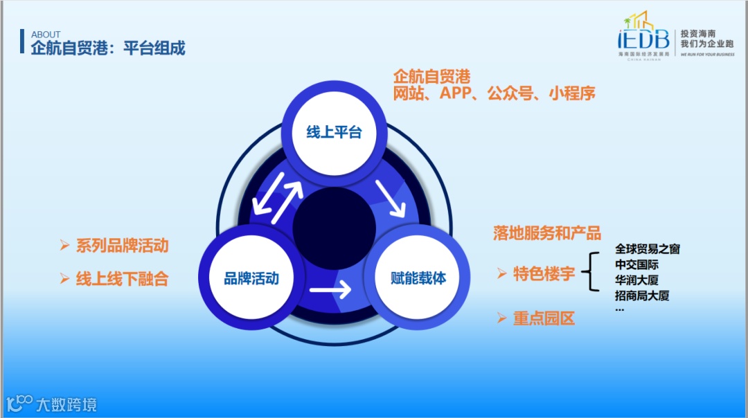 海南国际经济发展局局长唐华以《企航自贸港,从海南启航》为题,从海南自贸港政策体系、产业优势、发展前景等方面向参会嘉宾分享了海南自贸港机遇,并深入讲解“企航自贸港”一站式服务平台,让会员企业能够最便捷找到来琼投资的政务服务和专业服务提供者,尽可能满足企业在琼发展、特别是出海发展的高质量专业服务需求。
